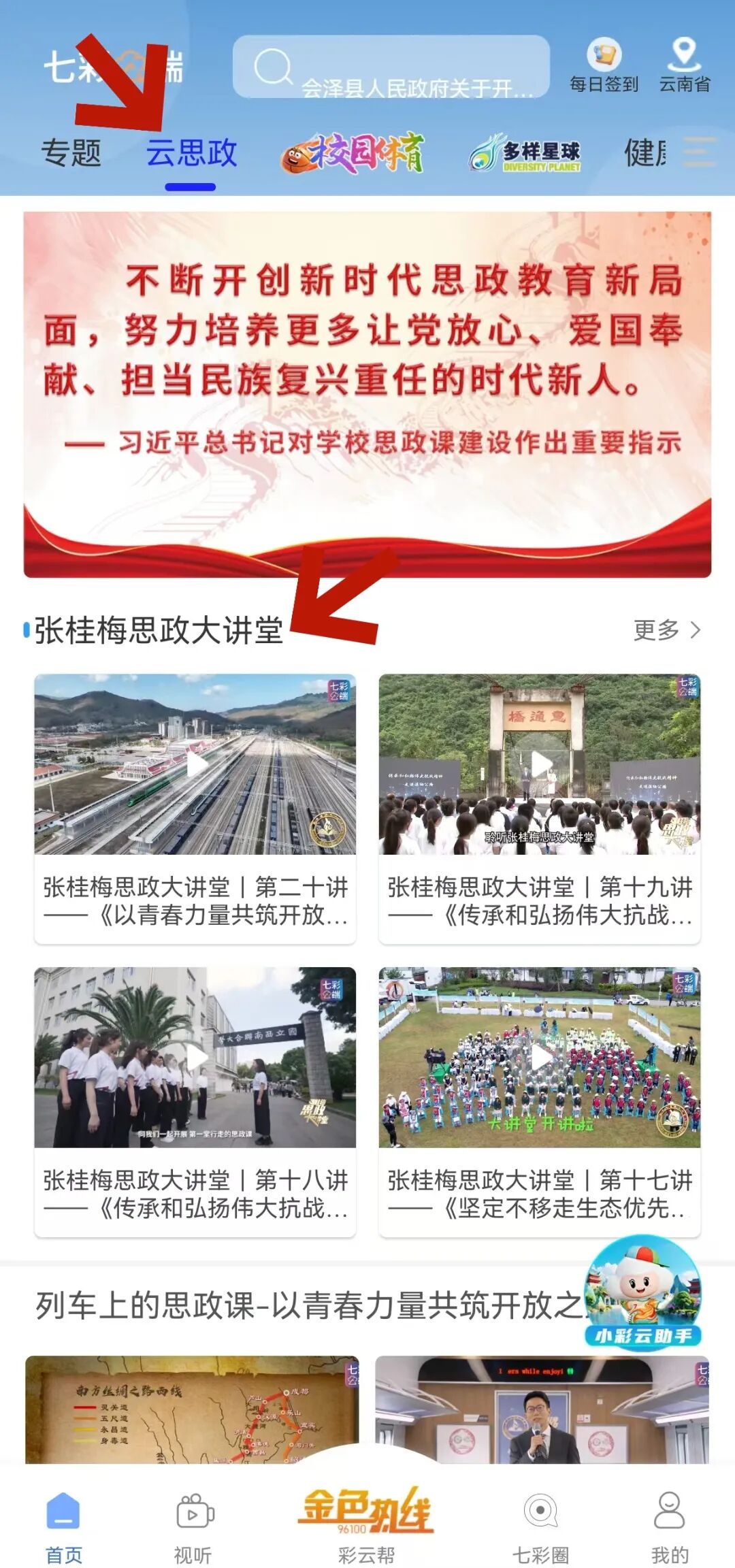 下载“七彩云端”,在首页进入《云思政》专栏,观看“张桂梅思政大讲堂”精彩内容。